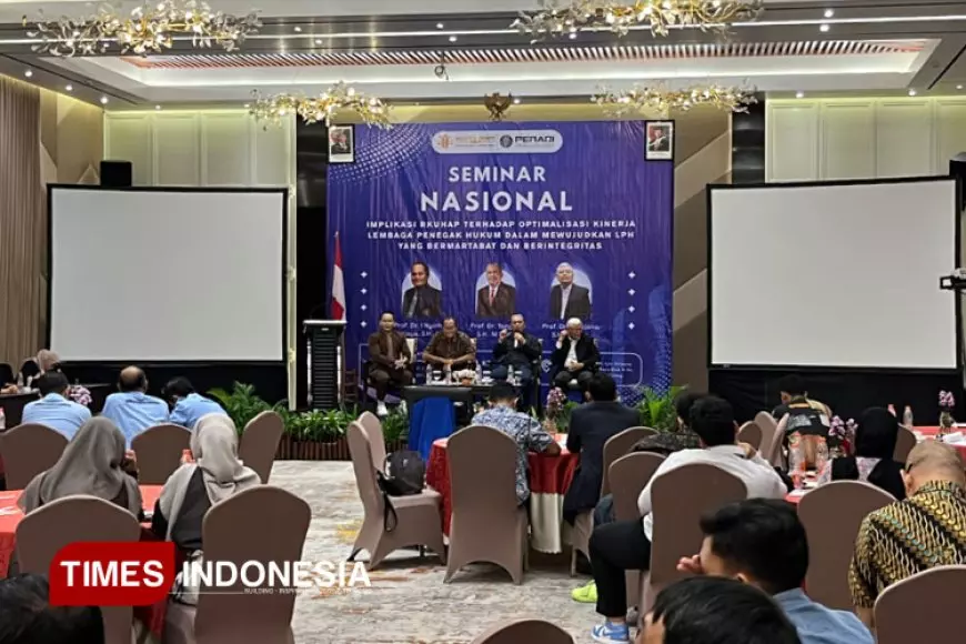 TIMESINDONESIA, MALANG – Rancangan Kitab Undang-Undang Hukum Acara Pidana (RKUHAP) kembali menjadi sorotan publik. Kali ini, isu krusial tersebut dibahas dalam Seminar Nasional bertema "Implikasi RKUHAP terhadap Optimalisasi Kinerja Lembaga Penegak Hukum (LPH) yang Bermartabat dan Berintegritas", Kamis (17/4/2025), di Ijen Suites, Malang. Seminar digelar oleh Kantor Hukum Aullia Tri Koerniawati & Rekan bekerja sama dengan PERADI.